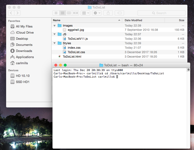 The To-Do List project in this example was originally part of a CV website but placed into its own directory for clarity.